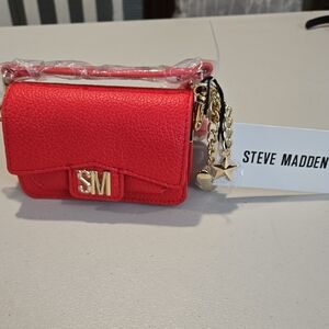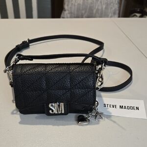 STEVE MADDEN Bmarilyn Faux-leather Chain Link Crossbody Purse black & chrome