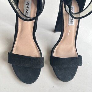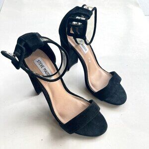 STEVE MADDEN Cecilia Black Suede Block Heel PVC Ankle Strap Heels Sandals Sz 6M