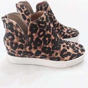 STEVE MADDEN Claud Leopard Print Back Zip Bootie High Top Wedge Sneaker Sz 5 NEW