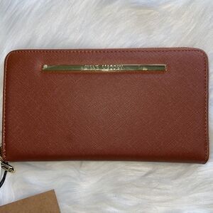 STEVE MADDEN Cognac & Gold Zip Around Wristlet Case Wallet. NWT