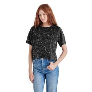 STEVE MADDEN Cressa Sequin Top in Black BO405317 NEW NWT Large L