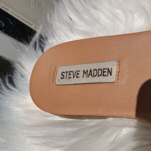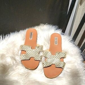 STEVE MADDEN Dariella Snakeskin-Print Slides Gold 9