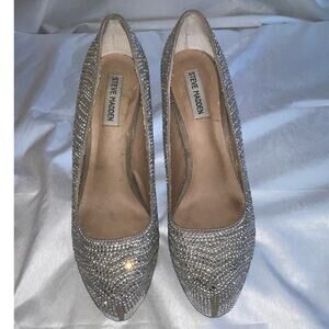 - STEVE MADDEN Dyvinal Platform Rhinestone Silver Jeweled Heels