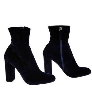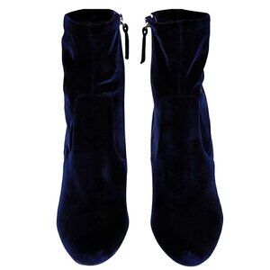 STEVE MADDEN Edit Midnight Blue Velvet Covered Heels Zip Booties 8.5M New No Box