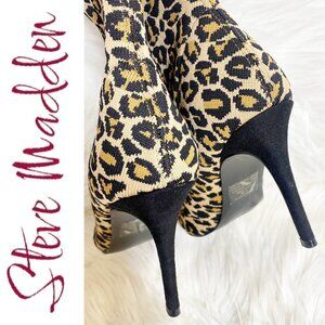 STEVE MADDEN Enya Leopard Print Sock Bootie Stiletto, Size 8.5