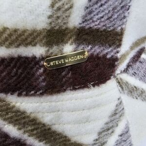 STEVE MADDEN Fuzzy Plaid Bucket Hat Y2K 90s Vibes Cream Brown Womens One Size