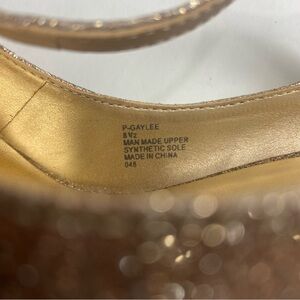 STEVE MADDEN "GAYLEE" GOLD SPARKLE STILETTO HEEL PLATFORM T-STRAP PUMPS SZ 8.5M