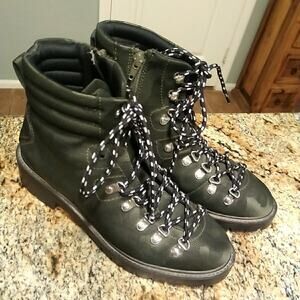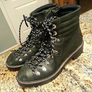 STEVE MADDEN GEIGER LACE UP COMBAT BOOTS SIZE 8.5 M Olive note: MISSING ONE METAL LOOP, STILL TIE UP TIGHT ON HOOKS.