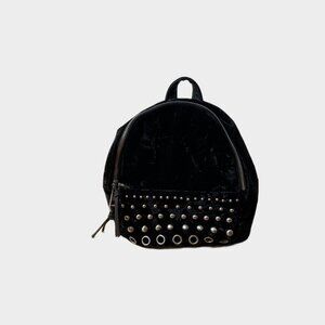 STEVE MADDEN GIRLS BLACK FAUX VELVET MINI STUDDED BACKPACK