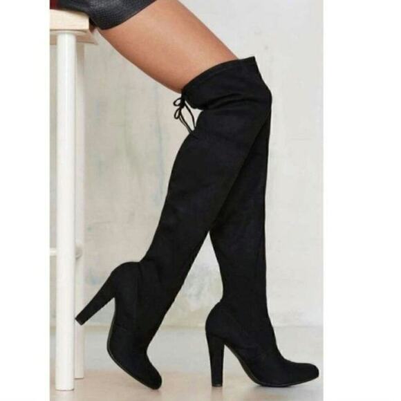 STEVE MADDEN "GORGEOUS" VEGAN SUEDE OVER THE KNEE BLACK BOOTS, sz 10