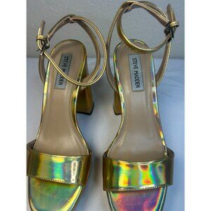 STEVE MADDEN Gold Lessa Platform Block Heeled Sandal Women Size 7