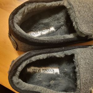 new without tags never worn Steve Madden slippers. Size 9, grey, faux fur lining,