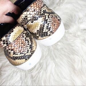 * Chic faux snakeskin slip on loafers will take your look up a notch!