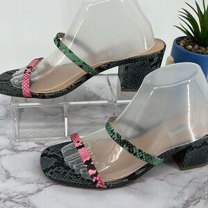 STEVE MADDEN Issy Strappy Block Heel Sandal Multicolor Snakeskin Print Sz 9.5 M
