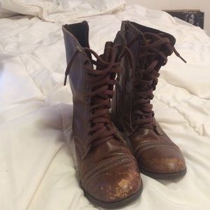 Very very comfortable and great for fall! Have a couple of scuff marks but really adds to the vintage look. Worn a couple time great condition. No PayPal or trades! Sorry. Willing to debate price.