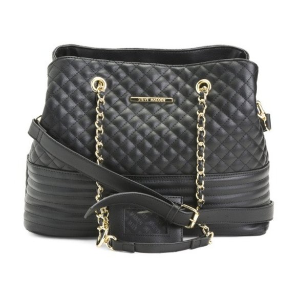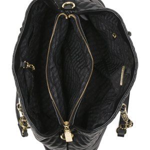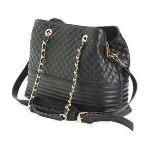 STEVE MADDEN Large Black Quilted Shoulder Bag with Gold Chain Handles