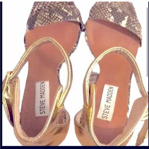 Steve Madden gold snake skin ankle buckle strap heels/stilettos