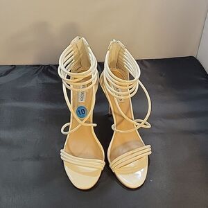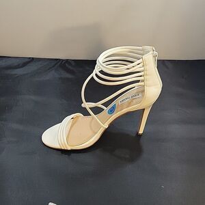 STEVE MADDEN FAYJA MULTI-STRAP HIGH HEEL ROUND TOE SANDAL SIZE 10M COLOR WHITE FEATURING CRISSCROSS STRAP AND MULTI-ANKEL STRAP BACK ZIP CLOSURE ANKLE OPEN TOE MADE WITH ALL MAN MADE MATERIALS HEEL HEIGHT MEASUREMENTS APPROX 4"INCHED THIS ITEMS IS PRE-OWNED EXCELLENT CONDITION WITH ONLY LIGHT SIGNS OF WEAR IF ANY CHECK THE PICTURES