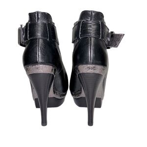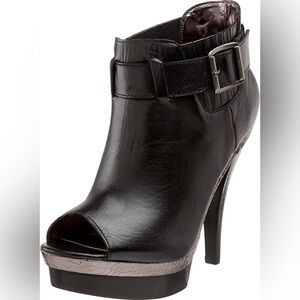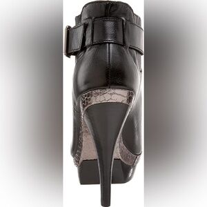 STEVE MADDEN | Mainst Leather Peep Toe Booties Black Silver Snakeskin 6M