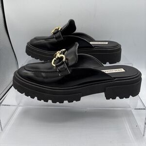 STEVE MADDEN Missk Black Patent Leather Mules Size 7.5 Platform Chunky Loafer
