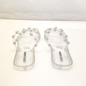 STEVE MADDEN Nonii Clear/Pearl Embellished Jelly Sandals.