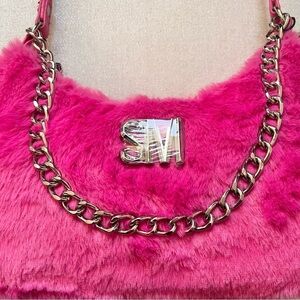 STEVE MADDEN- NWT Hot Pink Fur Shoulder Bag with Chain Detail. This stylish pink fur shoulder bag features a chic chain detail, perfect for adding a pop of color to any outfit.
