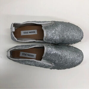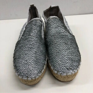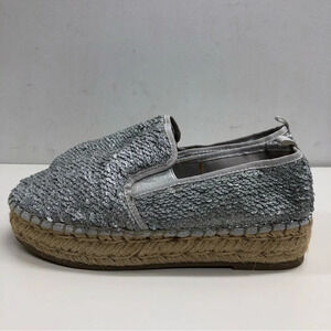 STEVE MADDEN ‘Poppi’ Silver Sequin Espadrilles Platform Shoes Size 7.5