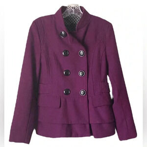 STEVE MADDEN | Purple Double Breasted Wool Blend Peplum Ruffled Peacoat Size M