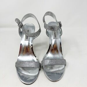 STEVE MADDEN SILVER RHINESTONE DISCO HEELS SANDALS WOMENS SZ 8.5