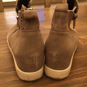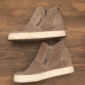 STEVE MADDEN SIZE 8.5 M TAUPE SUEDE PERFORATED WEDGIE SNEAKER