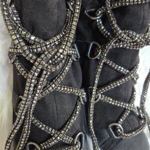 STEVE MADDEN Seductive Strappy Rhinestone Lace-Up Dress Leather Booties Size 7