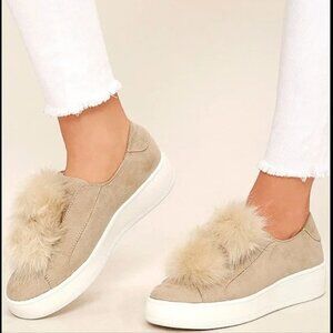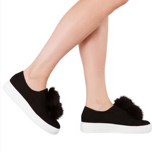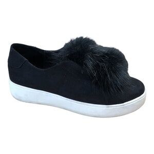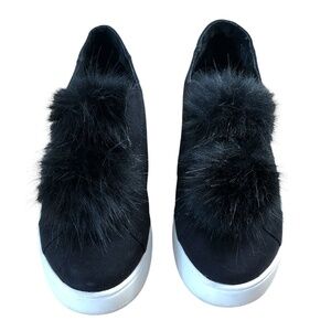 STEVE MADDEN Slip On Sneaker Women's Size 7.5 Black Furlie Double Pom Pom Shoes