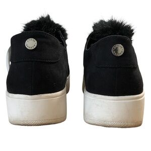♡ Women's size: US7.5. Black, White. Sneakers have cute faux fur pom poms, Easy to slide on and off, Heart shape marker in bottom soles. Pre-loved item looks in good condition to me, please be aware of some natural wear and distressing. See descriptive photos for approximate measurements, condition, No care/material tags. Photos of model are for approximate fit & style. Thank you! ♡