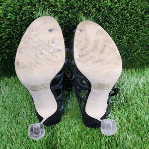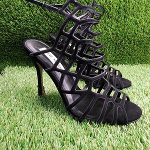 STEVE MADDEN | Slithur Black Nubuck Leather Caged Heels in Excellent Condition