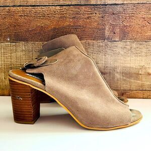 STEVE MADDEN Suede Catlyna Taupe Heel Sandal