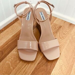 STEVE MADDEN Tan Patent Leather Wedge Heel Sandal Open Toe Beige Size 11 New