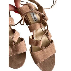 STEVE MADDEN Tan Suede Laceup Kitten Heels Sandals Size 6