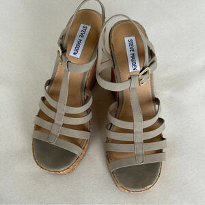 STEVE MADDEN Taupe Nalla Cork Wedge Platform Strappy Sandals / Women’s Size 8