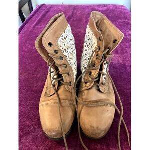STEVE MADDEN Thundr-C Cognac Crochet Lace-Up Ankle Boot Size 6.5 COTTAGE PRAIRIE