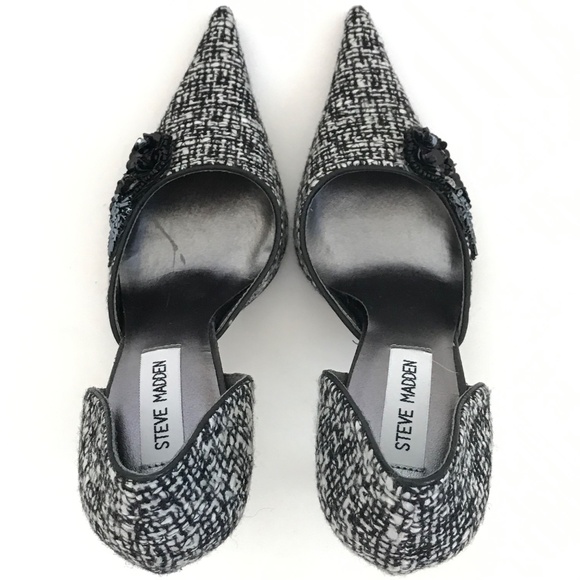 STEVE MADDEN Tweed Stiletto Heels Pointed Toe Black D’Orsay Pump Women’s Size 8