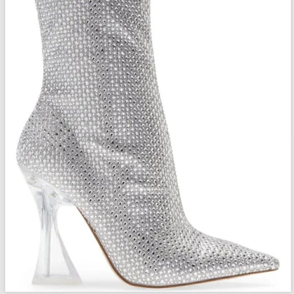 STEVE MADDEN Vivy-r Crystal Boots wclear Lucite Heel sz 6