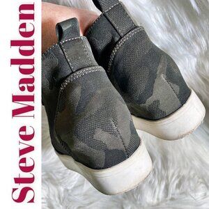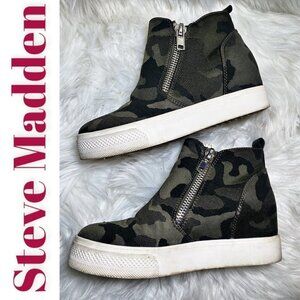 STEVE MADDEN WEDGIE Camo Dual Side Zip High Top Sneaker, Size 6