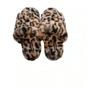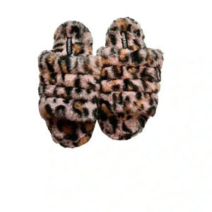 STEVE MADDEN FAUX FUR WOMEN’S COMFY HOUSE SLIPPERS•SIZE L•PINK/BLACK/BROWN CHEETAH PRINT•NWOT•