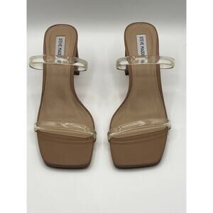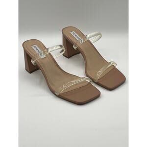 STEVE MADDEN WOMENS LILAH DRESS SANDALS BEIGE CLEAR VINYL 9.5M
