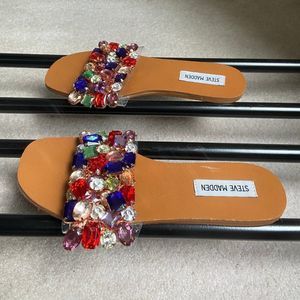 STEVE MADDEN Women Brionna Crystal Embellished Slide Sandals - NEW NWOB