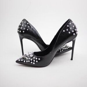 STEVE MADDEN Women's 10 Black stiletto high heels closed toe pump silver studded