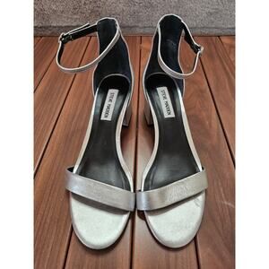 STEVE MADDEN Womens Irenee Luxe Open Toe Silver Formal Ankle Strap Sandals 8 M
