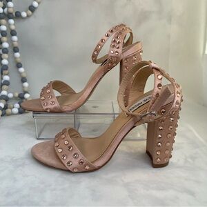 STEVE MADDEN Women’s Maeryn Pink Blush Satin Jeweled StuddedHeels sz 6