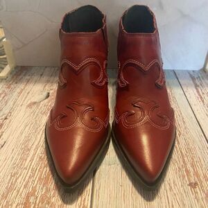STEVE MADDEN Women’s Red Leather Western Booties Size 6M New No Box SEE DESCRIPT