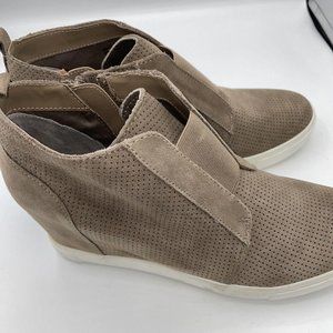 STEVE MADDEN Women's WAVERLY wedge suede sneakers in TAUPE sz 9.5 - EUC